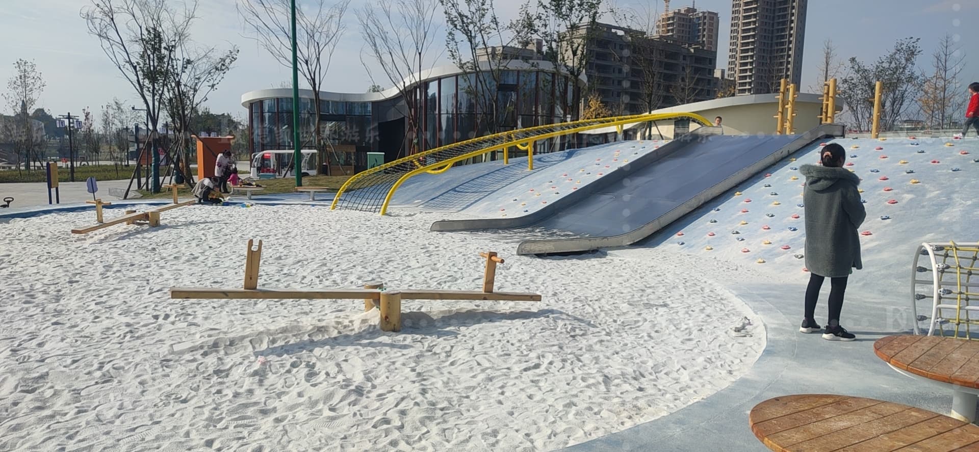 樂園集攀、爬、蹦、跳、躍等兒童游樂行為于一體進(jìn)行設(shè)計,大人小孩皆可玩耍。主要游樂設(shè)施有滑梯,攀爬點(diǎn),沙坑,廊架、蹦床、鉆籠、搖搖樂、攀爬網(wǎng)等,趣味十足,也很有挑戰(zhàn)性。一起來詳細(xì)了解一下把。