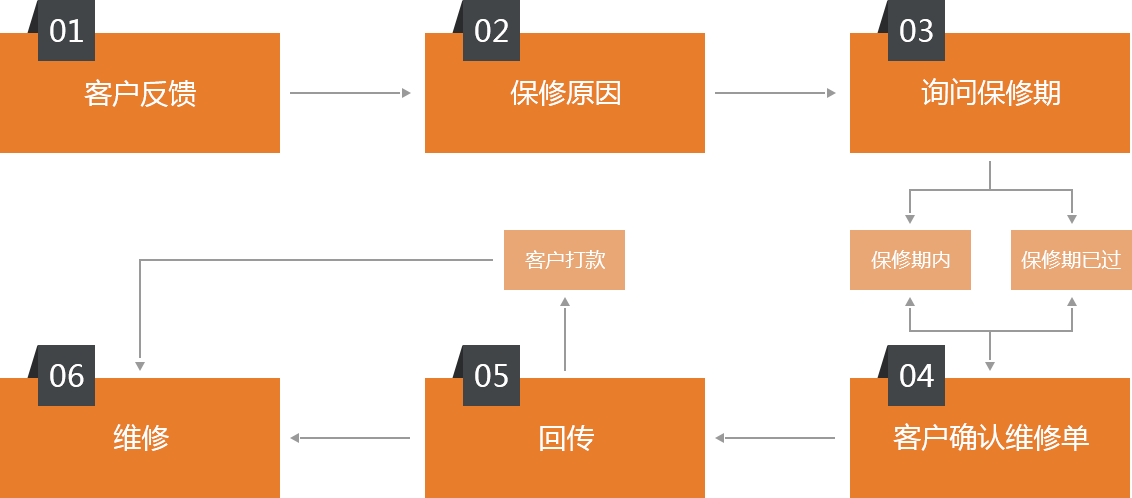 (1)客戶打款并傳回執(zhí)單,公司確認收到款項后,將安排維修。